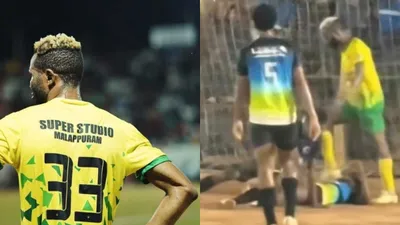 അഖിലേന്ത്യാ സെവന്സ് ഫുട്ബോള് ടൂര്ണമെന്റിനിടെ ഞെട്ടിപ്പിക്കും സംഭവം. മത്സരത്തിനിടെ എതിര് ടീം താരത്തിന്റെ നെഞ്ചില് ബൂട്ടിട്ട് ചവിട്ടിയ സൂപ്പര് സ്റ്റുഡിയോ മലപ്പുറത്തിന്റെ വിദേശ താരം സാമുവലിന് സെവന്സ് ഫുട്ബോള് അസോസിയേഷന് വിലക്ക് ഏര്പ്പെടുത്തി.