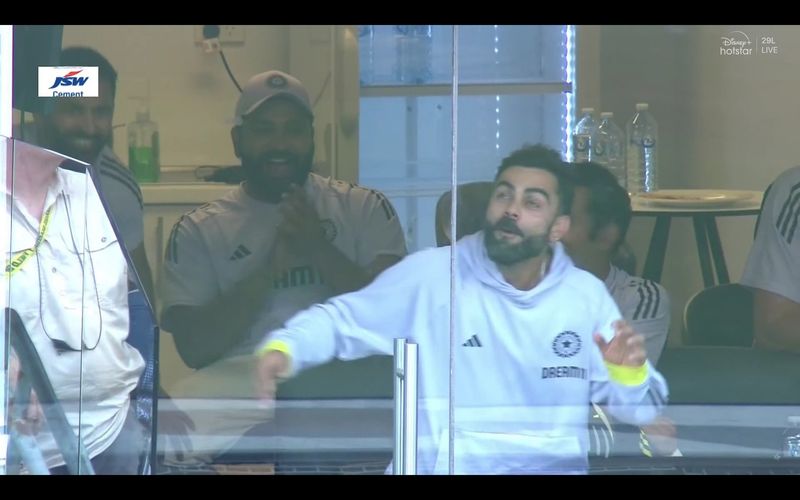 ഈ ഷോട്ട് കണ്ട കോഹ്ലി ഡ്രസ്സിംഗ് റൂമിന്റെ അരികിലുള്ള ഗ്ലാസ് വിന്ഡോയുടെ അടുത്തേക്ക് ഓടിപ്പോകുന്നത് കാണാമായിരുന്നു. ബാക്കിയുള്ള ടീം അംഗങ്ങള് നിറഞ്ഞ ചിരിയോടെ കൈയ്യടിച്ചു.