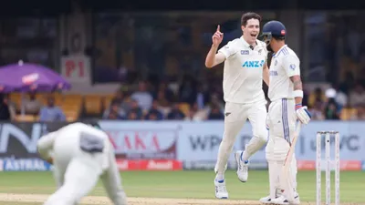 മൂടിക്കെട്ടിയ അന്തരീക്ഷം പേസ് ബൗളര്മാര്ക്ക് അനുകൂലമാക്കി മാറ്റിയ ചിന്നസ്വാമിയില് വില്യം ഓറോര്ക്ക് മൂന്ന് വിക്കറ്റുകള് വീഴ്ത്തി ഇന്ത്യന് നിരയെ തകര്ത്തു. മാറ്റ് ഹെന്റി രണ്ട് വിക്കറ്റും ടിം സൗത്തി ഒരു വിക്കറ്റും നേടി.