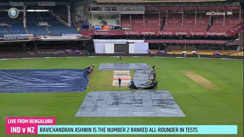 ബെംഗളൂരുവിലെ ചിന്നസ്വാമി സ്റ്റേഡിയത്തില് ഇന്ത്യയും ന്യൂസിലാന്ഡും തമ്മിലുള്ള ആദ്യ ടെസ്റ്റ് മത്സരം മഴ മൂലം വൈകുന്നു. തുടര്ച്ചയായി പെയ്യുന്ന മഴയെ തുടര്ന്ന് ടോസ് ഇടാന്് പോലും കഴിഞ്ഞിട്ടില്ല. രാവിലെ ഒന്പത് മണിക്ക് നടക്കേണ്ടിയിരുന്ന ടോസ് മഴ കാരണം നീട്ടിവെച്ചിരിക്കുകയാണ്. അതെസമയം നിലവില് മഴക്ക് നേരിയ ശമനമുണ്ട്. ഇത് മത്സം അല്മെങ്കിലും നടക്കുമെന്ന് പ്രതീക്ഷയുണ്ട്.