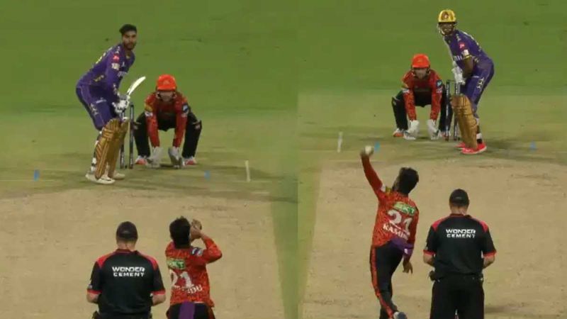 കളി തുടങ്ങി അധികം വൈകാതെ തന്നെ കമിന്ഡു കാണികളെ ഞെട്ടിച്ചു. പന്തെറിയുന്നതിനിടെ അദ്ദേഹം കൈകള് മാറ്റി എറിയാന് തുടങ്ങിയതാണ് ഇതിന് കാരണം. 26-കാരനായ ഈ താരം ആദ്യം വലത് കൈ കൊണ്ട് അങ്ക്രിഷ് രഘുവംശിക്കെതിരെ സ്പിന് എറിഞ്ഞു. ഈ പന്തില് ഒരു സിംഗിള് നേടിയ രഘുവംശി അര്ദ്ധസെഞ്ച്വറി പൂര്ത്തിയാക്കി.