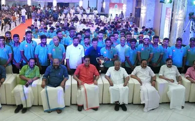 കായിക മന്ത്രി അബ്ദു റഹ്മാന് അധ്യക്ഷത വഹിച്ച ചടങ്ങില് നിയമസഭാ സ്പീക്കര് എ.എന് ഷംസീര്, മറ്റ് മന്ത്രിമാര്, എംഎല്എമാര്, പൗരപ്രമുഖര് എന്നിവര് പങ്കെടുത്തു. ടീം ക്യാപ്റ്റന് സച്ചിന് ബേബി റണ്ണര് അപ്പ് ട്രോഫി മുഖ്യമന്ത്രിക്ക് കൈമാറി.
