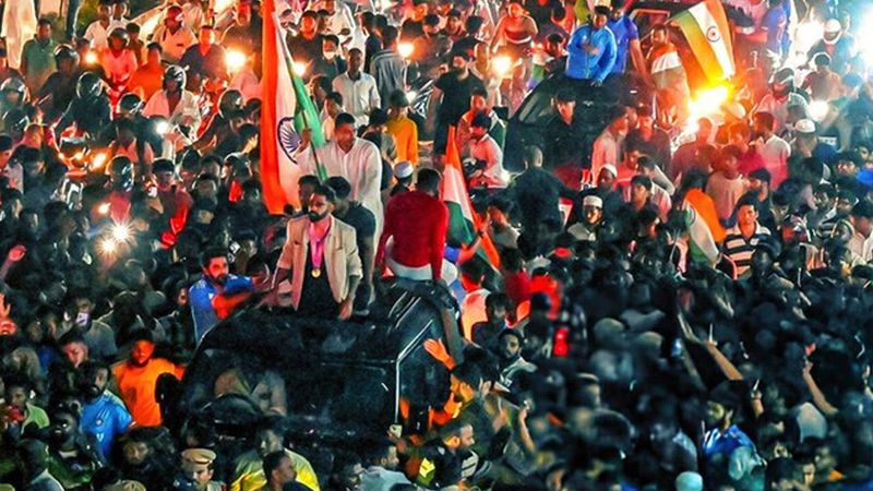 ഇന്ത്യന് ടീമിന്റെ വിജയാഘോഷത്തിലും അനുമോദന ചടങ്ങിലും പങ്കെടുത്ത ശേഷം ഹൈദരാബാദിലെത്തിയ മുഹമ്മദ് സിറാജിന് ഊഷ്മള സ്വീകരിണമാണ് ലഭിച്ചത്.. രാജീവ് ഗാന്ധി അന്താരാഷ്ട്ര വിമാനത്താവളത്തിലെത്തിയ സിറാജിന് ആരാധകരുടെ വന് കൂട്ടമാണ് സ്വീകരിച്ചത്.