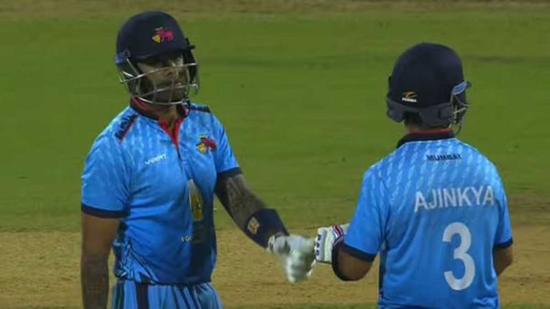 സൂര്യകുമാര് യാദവ് (48), അജിങ്ക്യ രഹാനെ (37) എന്നിവര് മുംബൈയുടെ ഇന്നിങ്സിന് അടിത്തറയിട്ടു. എന്നാല് വിജയത്തിലേക്കുള്ള കുതിപ്പിന് വേഗം പകര്ന്നത് സൂര്യന്ഷ് ഷെഡ്ജെയുടെ (15 പന്തില് പുറത്താവാതെ 36) വെടിക്കെട്ട് ബാറ്റിങ്ങായിരുന്നു. മൂന്ന് സിക്സും മൂന്ന് ഫോറും ഉള്പ്പെടെ 15 പന്തില് 36 റണ്സ് നേടിയ ഷെഡ്ജെ മുംബൈയെ വിജയത്തിലേക്ക് നയിച്ചു. ഷെഡ്ജെയ്ക്ക് മികച്ച പിന്തുണ നല്കിയത് അഥര്വ അങ്കോളേക്കറാണ് (6 പന്തില് 16).