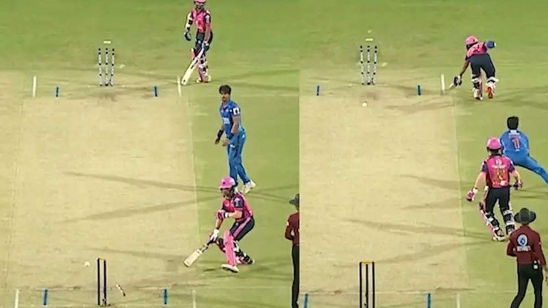 പന്ത് കൈപ്പിടിയിലൊതുക്കാന്‍ വിക്കറ്റ് കീപ്പര്‍ അതിവേഗം ഓടിയെത്തി. ഷോര്‍ട്ട് ഫൈന്‍ ലെഗ്ഗിനടുത്തുനിന്ന് പന്തെടുത്ത കീപ്പര്‍ ഒരു നിമിഷം പോലും പാഴാക്കാതെ അത് സ്‌ട്രൈക്കറുടെ എന്‍ഡിലേക്ക് എറിഞ്ഞു. ബാറ്റര്‍ സിദ്ധേഷ് വീര്‍ ക്രീസിലെത്തിയതിനാല്‍ ആ ശ്രമം വിഫലമായി എന്ന് തോന്നിച്ച നിമിഷം. കീപ്പറിന്റെ ഏറ് കൃത്യമായി സ്‌ട്രൈക്കറുടെ എന്‍ഡിലെ സ്റ്റമ്പിലിടിച്ചു.