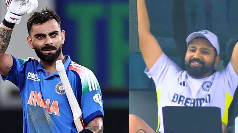 പാകിസ്താനെതിരെ ഇന്ത്യയുടെ വിജയത്തോടൊപ്പം വിരാട് കോഹ്ലിയുടെ സെഞ്ച്വറിക്കായി ആരാധകര്‍ കാത്തിരിക്കുകയായിരുന്നു. ഇപ്പോള്‍ വിരാട് കോഹ്ലിയുടെ സെഞ്ച്വറി നേട്ടം ഡ്രസ്സിംഗ് റൂമിലിരുന്ന് ആഘോഷിക്കുന്ന രോഹിത് ശര്‍മയുടെ വീഡിയോയാണ് വൈറലാകുന്നത്. അവസാന പന്തില്‍ സിക്‌സ് അടിച്ച് കളി ജയിപ്പിക്കാന്‍ കോഹ്ലിക്ക് രോഹിത് നിര്‍ദ്ദേശം നല്‍കുന്ന രസകരമായ ദൃശ്യങ്ങളാണ് ആരാധകര്‍ ഏറ്റെടുത്തിരിക്കുന്നത്.