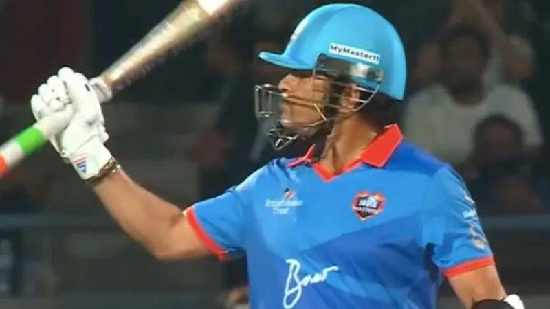 ക്രിക്കറ്റ് ഇതിഹാസം സച്ചിന് ടെണ്ടുല്ക്കര് ഷാര്ജയിലെ മരുഭൂമിയിലെ കൊടുങ്കാറ്റ് ഓര്മിപ്പിച്ച് 33 പന്തില് 64 റണ്സ് നേടി ഇന്ത്യന് മാസ്റ്റേഴ്സിന്റെ റണ് ചേസിങ്ങിന് മികച്ച തുടക്കം നല്കി. സച്ചിന്റെ മനോഹരമായ ലേറ്റ് കട്ടുകളും അതിശക്തമായ സ്ട്രൈറ്റ് ഡ്രൈവുകളും കാണികള്ക്ക് വിരുന്നൊരുക്കി. 27 പന്തില് അര്ദ്ധസെഞ്ച്വറി നേടിയ സച്ചിന് താന് ഇന്ത്യന് ക്രിക്കറ്റിന്റെ ഹൃദയമിടിപ്പായത് എന്തുകൊണ്ടാണെന്ന് ഒരിക്കല് കൂടി തെളിയിച്ചു.
