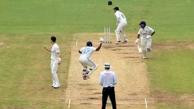 മത്സരത്തിന്റെ 55-ാം ഓവറില് ഒരു രസകരമായ സംഭവമുണ്ടായി. റിഷഭ് പന്തും സര്ഫറാസ് ഖാനും തമ്മില് റണ്സെടുക്കാന് ശ്രമിക്കുന്നതിനിടെയുണ്ടായ ആശയക്കുഴപ്പമാണ് ഈ രസകരമായ സംഭവത്തിന് ആധാരം. റണ്ണൗട്ടില് നിന്ന് പന്ത് അത്ഭുതകരമായി രക്ഷപ്പെട്ടു.