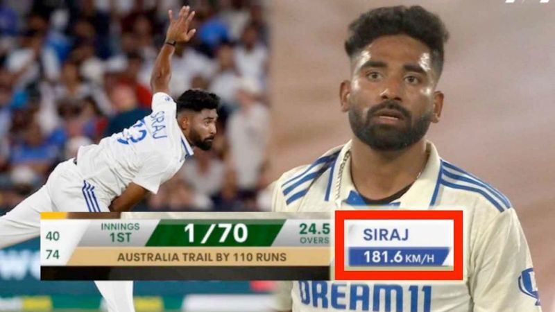 അഡ്ലെയ്ഡ് ഓവലിൽ നടക്കുന്ന പിങ്ക് ബോൾ ടെസ്റ്റിൽ ഇന്ത്യൻ പേസർ മുഹമ്മദ് സിറാജിന്റെ ഒരു പന്ത് അതിശയകരമായ വേഗത്തിലെത്തിയതായി ഗ്രൗണ്ടിലെ സ്പീഡ് ഗൺ രേഖപ്പെടുത്തി. പന്ത് 181.6 കിലോമീറ്റർ വേഗത്തിലാണ് എറിഞ്ഞത് എന്നാണ് സ്പീഡ് ഗൺ രേഖപ്പെടുത്തിയത്. എന്നാൽ ഇത് സ്പീഡ് ഗണ്ണിലെ തകരാർ മൂലം സംഭവിച്ചതാണെന്ന് പിന്നീട് വ്യക്തമായി.