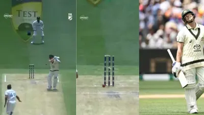 ആകാശ് ദീപിന്റെ പന്ത് ഓഫ് സൈഡിലൂടെ അടിച്ചകറ്റാന് ശ്രമിച്ച സ്മിത്തിന് പന്ത് ശരിയായി കണക്ട് ചെയ്യാനായില്ല. ബാറ്റിന്റെ അരികില് തട്ടിയ പന്ത് താരത്തിന്റെ ശരീരത്തില് തട്ടി സ്റ്റമ്പിലേക്ക് സാവധാനം പതിക്കുകയായിരുന്നു.