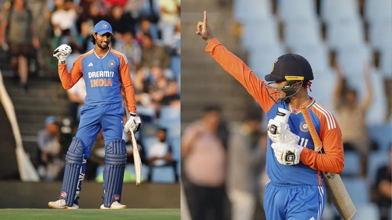 ഇന്ത്യൻ ഇന്നിംഗ്സിന്റെ തുടക്കത്തിൽ തന്നെ തിരിച്ചടി നേരിട്ടു. ഇന്നിങ്സിന്റെ രണ്ടാമത്തെ പന്തിൽ തന്നെ സഞ്ജു സാംസൺ പുറത്തായി. മാർക്കോ ജാൻസൻ എറിഞ്ഞ പന്തിൽ ക്ലീൻ ബൗൾഡായാണ് സഞ്ജു പുറത്തായത്. പിന്നാലെ നായകൻ സൂര്യയും ഒരു റൺ മാത്രമെടുത്ത് പുറത്തായതോടെ ഇന്ത്യ തകർച്ച മണത്തു.. ഹാർദിക് പാണ്ഡ്യയും (18) വലിയ സംഭാവനയില്ലാതെ പുറത്തായി. മഹാരാജിന്റെ പന്തിൽ എൽ.ബി.ഡബ്ല്യുവായാണ് പാണ്ഡ്യ പുറത്തായത്.