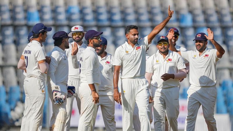 ഒരു ഘട്ടത്തില് ആറിന് 118 എന്ന നിലയില് തകര്ന്ന മുംബൈയെ ഏഴാം വിക്കറ്റില് ഷാര്ദുല് താക്കൂറും തനുഷ് കോട്ടിയാനും കൂടിയാണ് അല്പമെങ്കിലും നിലമെച്ചപ്പെടുത്തിയത്. എന്നാല് മത്സരത്തിന്റെ അവസാന പന്തില് 37 റണ്സെടുത്ത താക്കൂര് പുറത്തായത് മുംബൈയ്ക്ക് തിരിച്ചടിയായി.