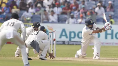 മത്സരത്തില് ഒരു റണ്സ് മാത്രമാണ് കോഹ്ലിക്ക് സ്കോര് ചെയ്യാനായത്. ന്യൂസിലാന്ഡ് സ്പിന്നര് മിച്ചല് സാന്റ്നറുടെ പന്തില് ക്ലീന് ബൗള്ഡായാണ് കോഹ്ലി പുറത്തായത്. ന്യൂസിലാന്ഡിന്റെ ഒന്നാം ഇന്നിംഗ്സ് സ്കോറായ 259ന് മറുപടി പറഞ്ഞ ഇന്ത്യ ആദ്യ ഇന്നിംഗ്സില് വെറും 156 റണ്സില് ഓള് ഔട്ടായി.