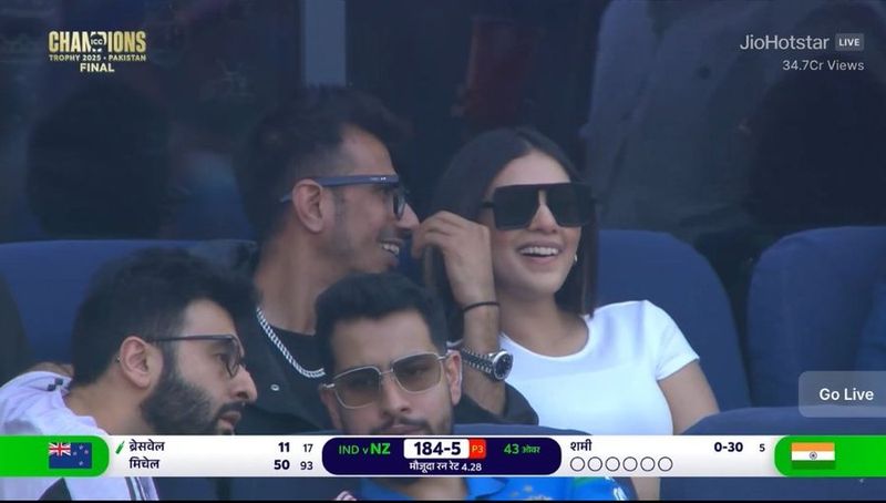 ചാംപ്യന്‍സ് ട്രോഫി ഫൈനലില്‍ ഇന്ത്യയും ന്യൂസിലന്‍ഡും ഏറ്റുമുട്ടുമ്പോള്‍, ദുബായ് രാജ്യാന്തര ക്രിക്കറ്റ് സ്റ്റേഡിയത്തിലെ ഗാലറിയില്‍ അജ്ഞാത സുന്ദരിയ്ക്കൊപ്പം കളി കാണുന്ന ഇന്ത്യന്‍ താരം യുസ്വേന്ദ്ര ചഹലിന്റെ ചിത്രങ്ങള്‍ സമൂഹമാധ്യമങ്ങളില്‍ വൈറലായി. 'ആരാണ് ചെഹലിനൊപ്പമുള്ള സുന്ദരി?' എന്ന ചോദ്യവുമായി നിരവധി പേരാണ് ചിത്രങ്ങള്‍ പങ്കുവെച്ചത്. കുറച്ചുകാലമായി ഇന്ത്യന്‍ ടീമിന് പുറത്തായ ചഹല്‍, ഭാര്യ ധനശ്രീ വര്‍മയുമായുള്ള വിവാഹമോചന വാര്‍ത്തകളിലൂടെയും അടുത്തിടെ വാര്‍ത്തകളില്‍ ഇടംപിടിച്ചിരുന്നു.